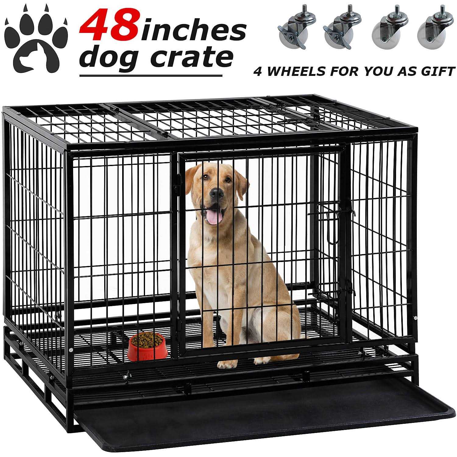 BestPet Dog Crate Cage for Large Dogs Heavy Duty Dog Kennel Pet Playpen for Training Indoor Outdoor with Plastic Tray Double Doors & Locks Design