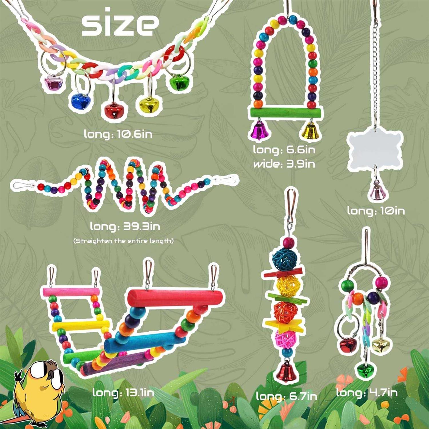 Xloey Parakeet Toys,7 Pcs Colorful Bird Toys for Parakeets,Pet Bird Cage Hammock Swing Climbing Ladders Chewing Toy Mirror Hanging Bell Wooden Perch