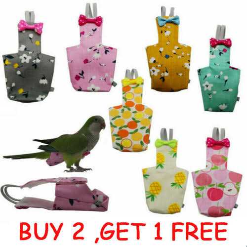 VANTRONIK Vanfavori Bird Diaper Harness Flight Suit Clothes with 80 Inch Flying Leash for Parrots Cockatiel Pet Birds Lemon