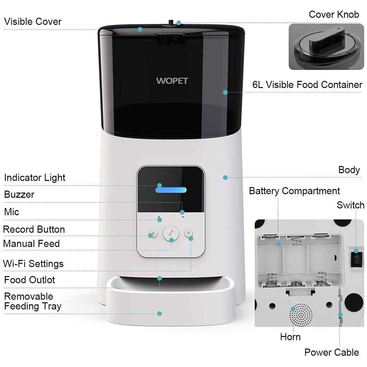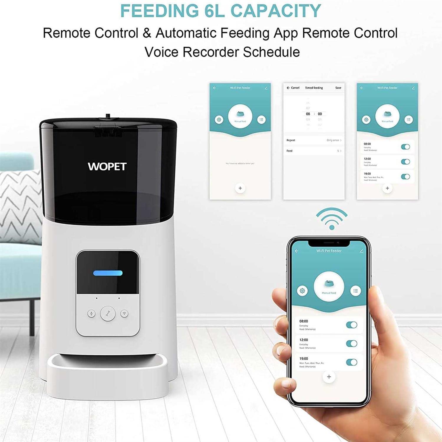 Wopet Automatic Dog Feeders, Wi-Fi Enabled Smart Cat Feeders, Cat Food Dispenser, Distribution Alarms and Voice Recorder Up to 15 Meals per Day