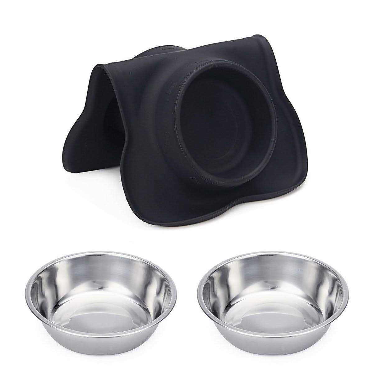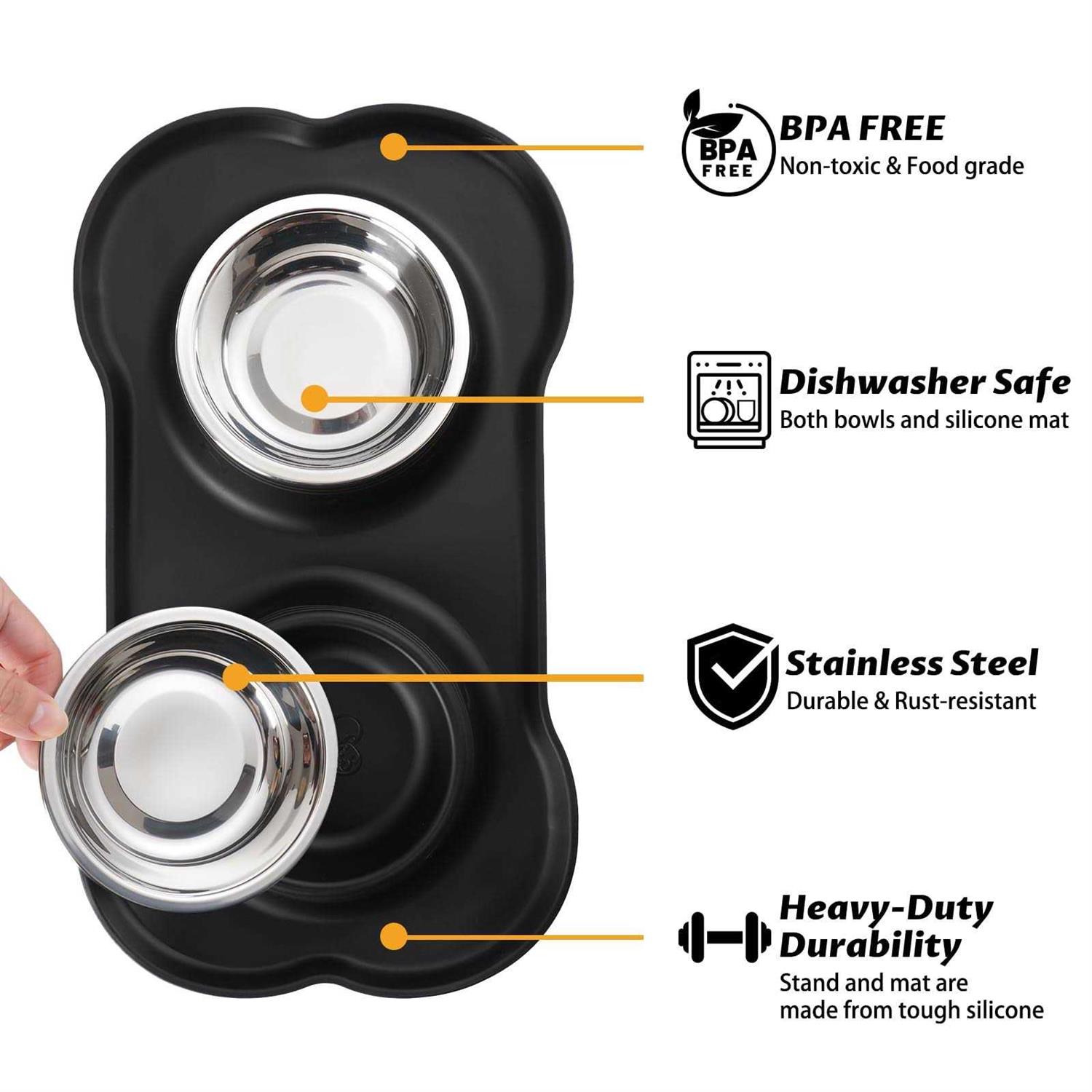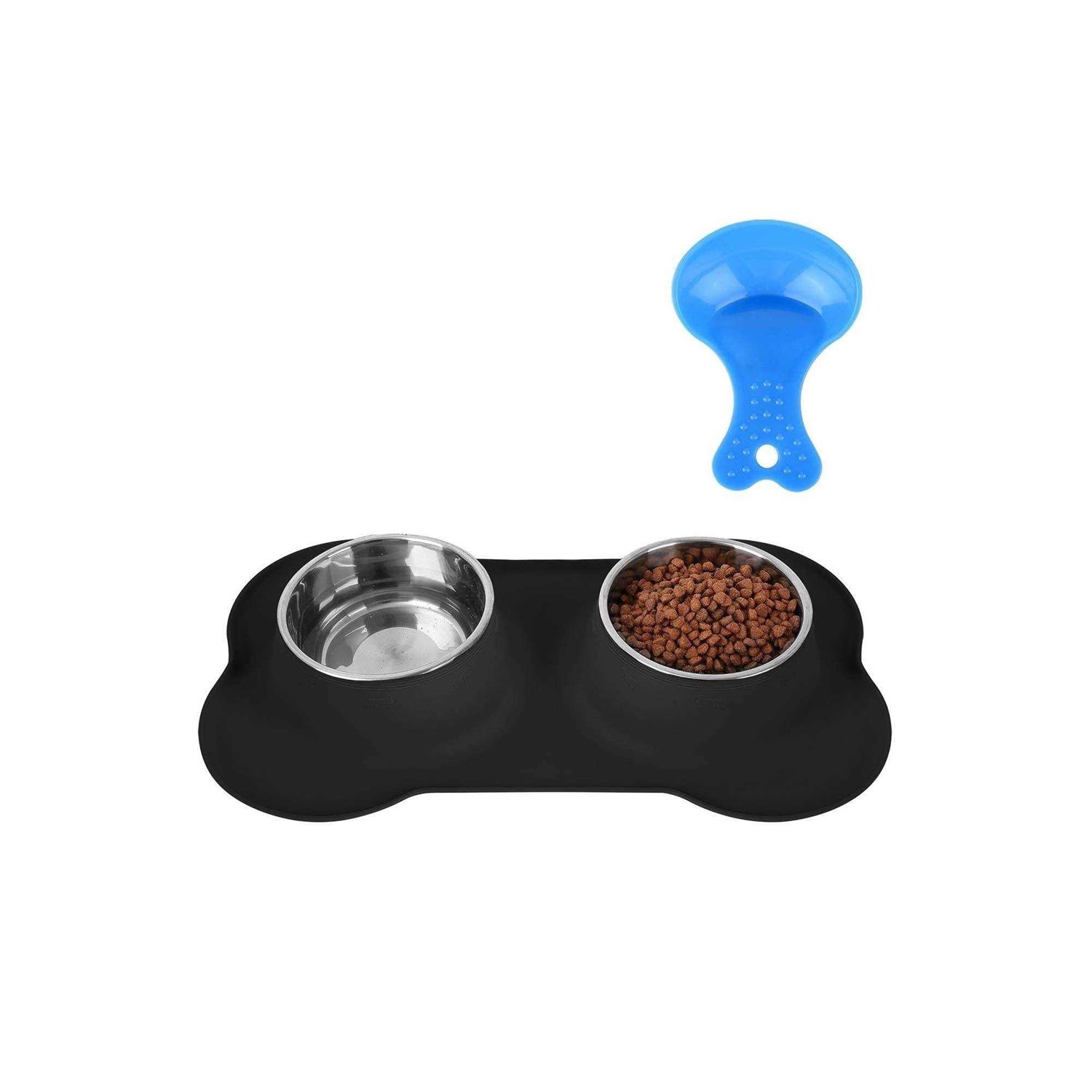 Hubulk Pet Dog Bowls 2 Stainless Steel Dog Bowl with No Spill Non-Skid Silicone Mat + Pet Food Scoop Water and Food Feeder Bowls for Feeding