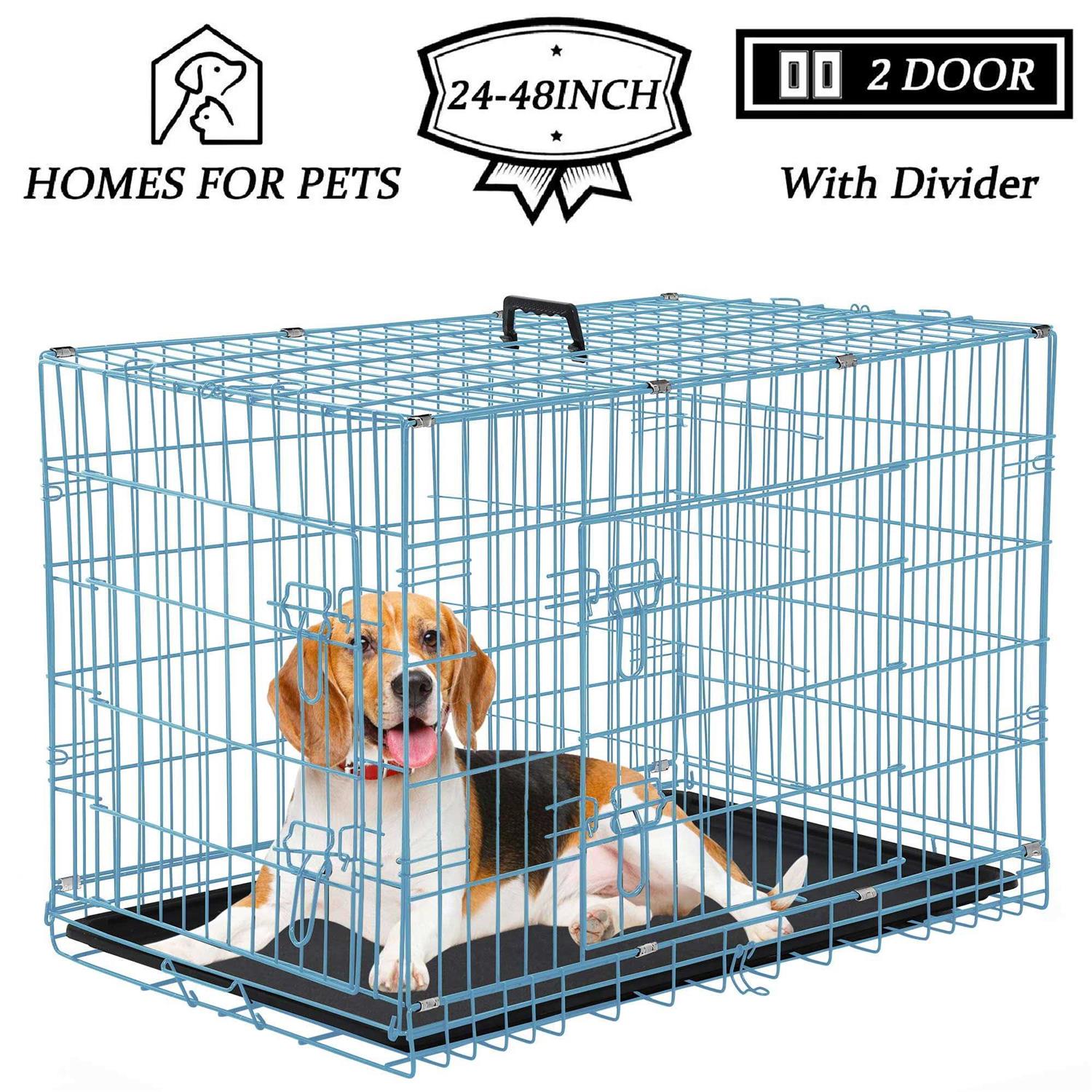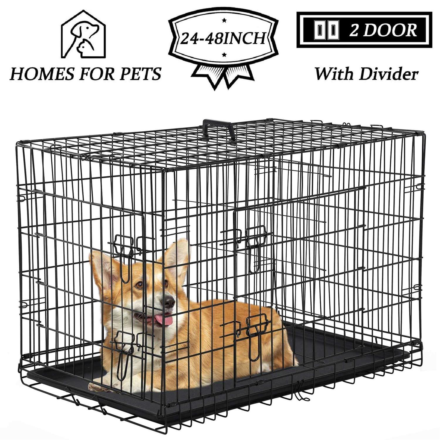 Yrllensdan Foldable Large Dog Crate for Large Dogs, Metal Wire Dog Cage with Plastic Tray and Handle Double-Door Outdoor Dog Crates and