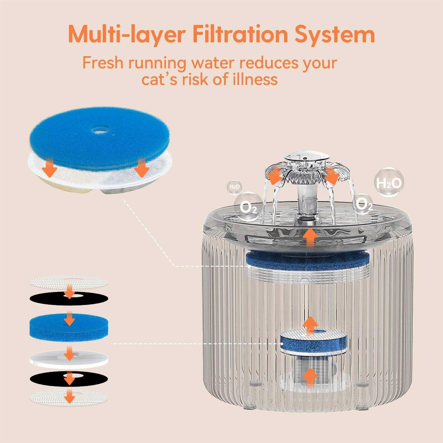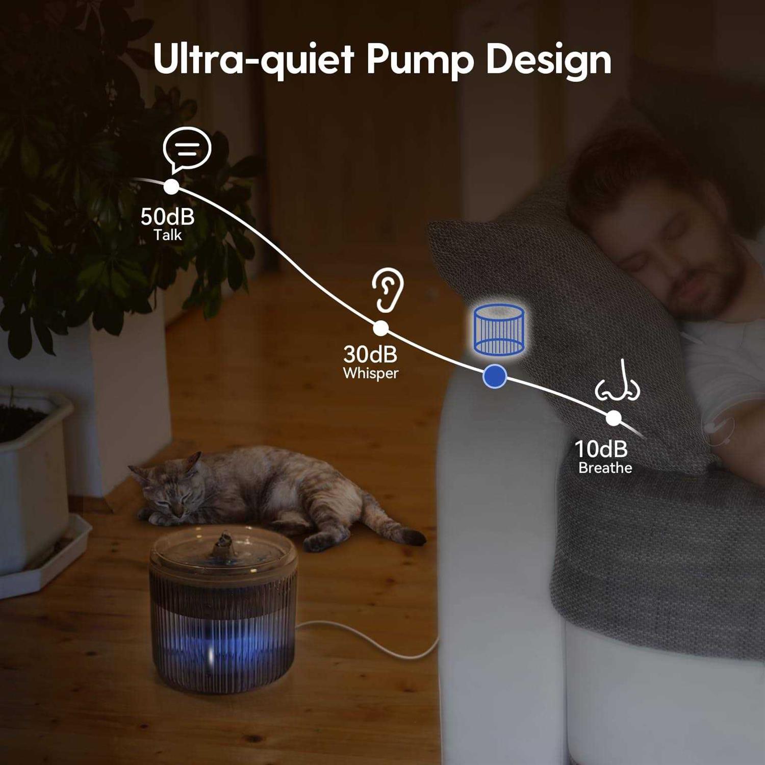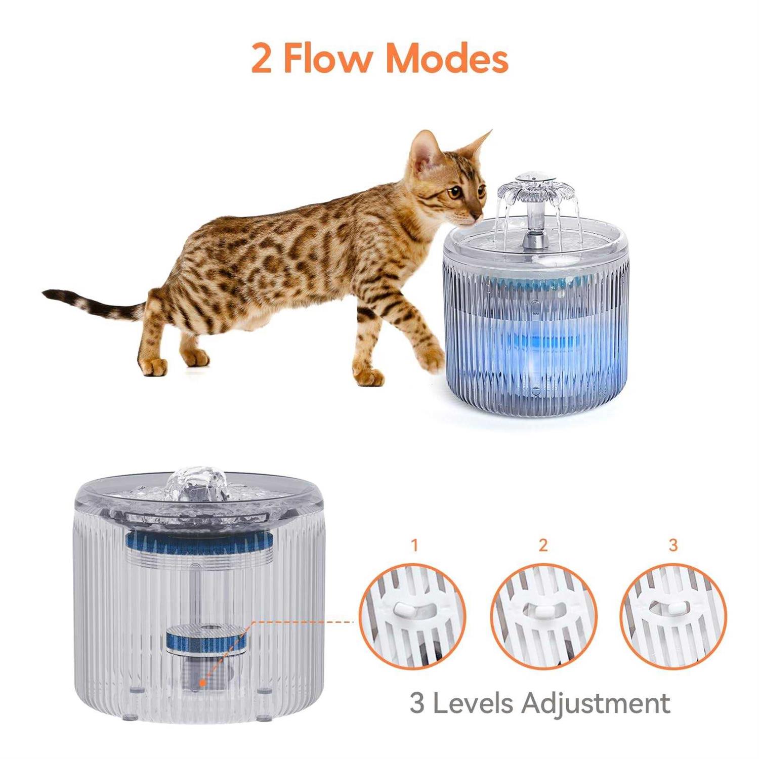 Cat Water Fountain with LED Light 88oz/2.6L No Pawblems Ultra Quiet Pet Water Fountain with 2 Flow Modes