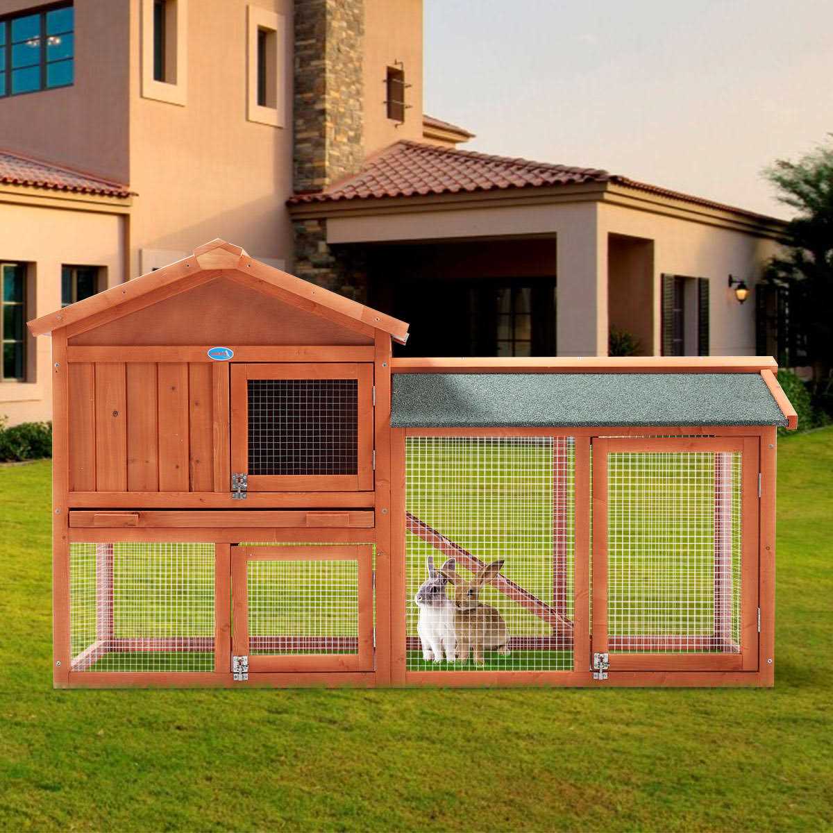 Coziwow by Jaxpety 2-Tier Outdoor Wooden Rabbit Hutch with Ramp