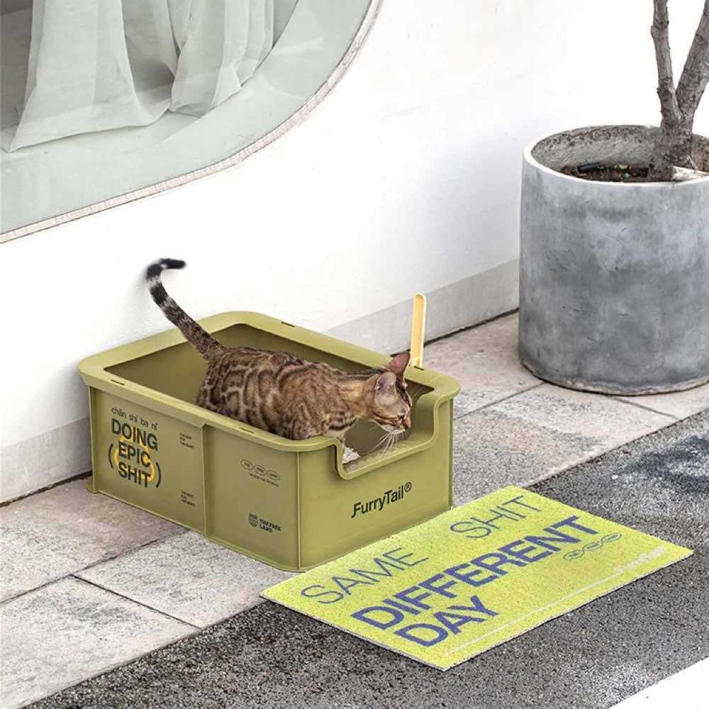Furrytail Camp Open Rimmed XL Cat Litter Box With Scoop