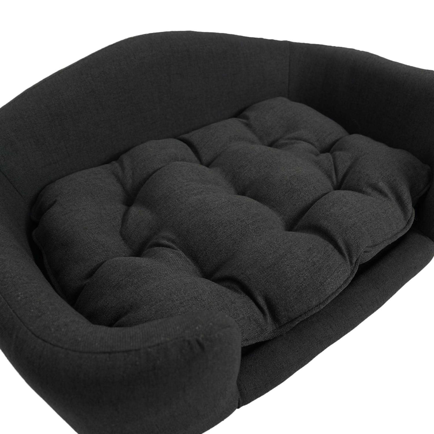 Noble House Ferncliffe Mid Century Small Plush Pet Bed, Dark Gray and Natural Finish