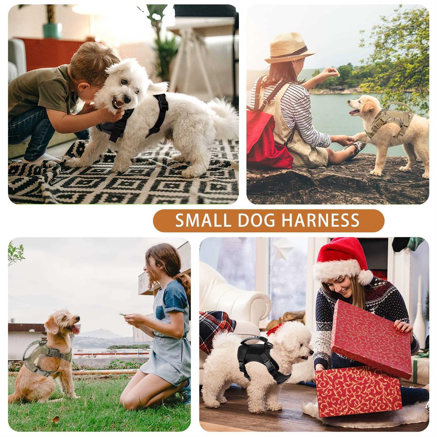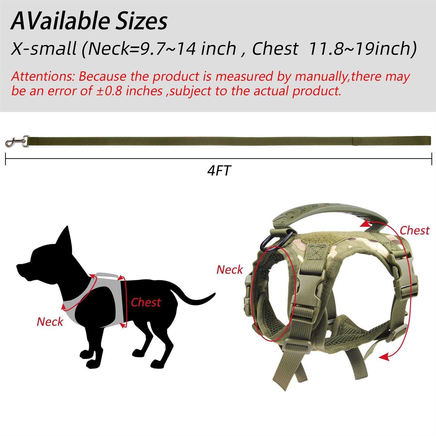 Annchwool Tactical Dog Harness for Small Dogs with Handle, Military Service Dog Vest and Leash Set for Outdoor Training Walking Hiking