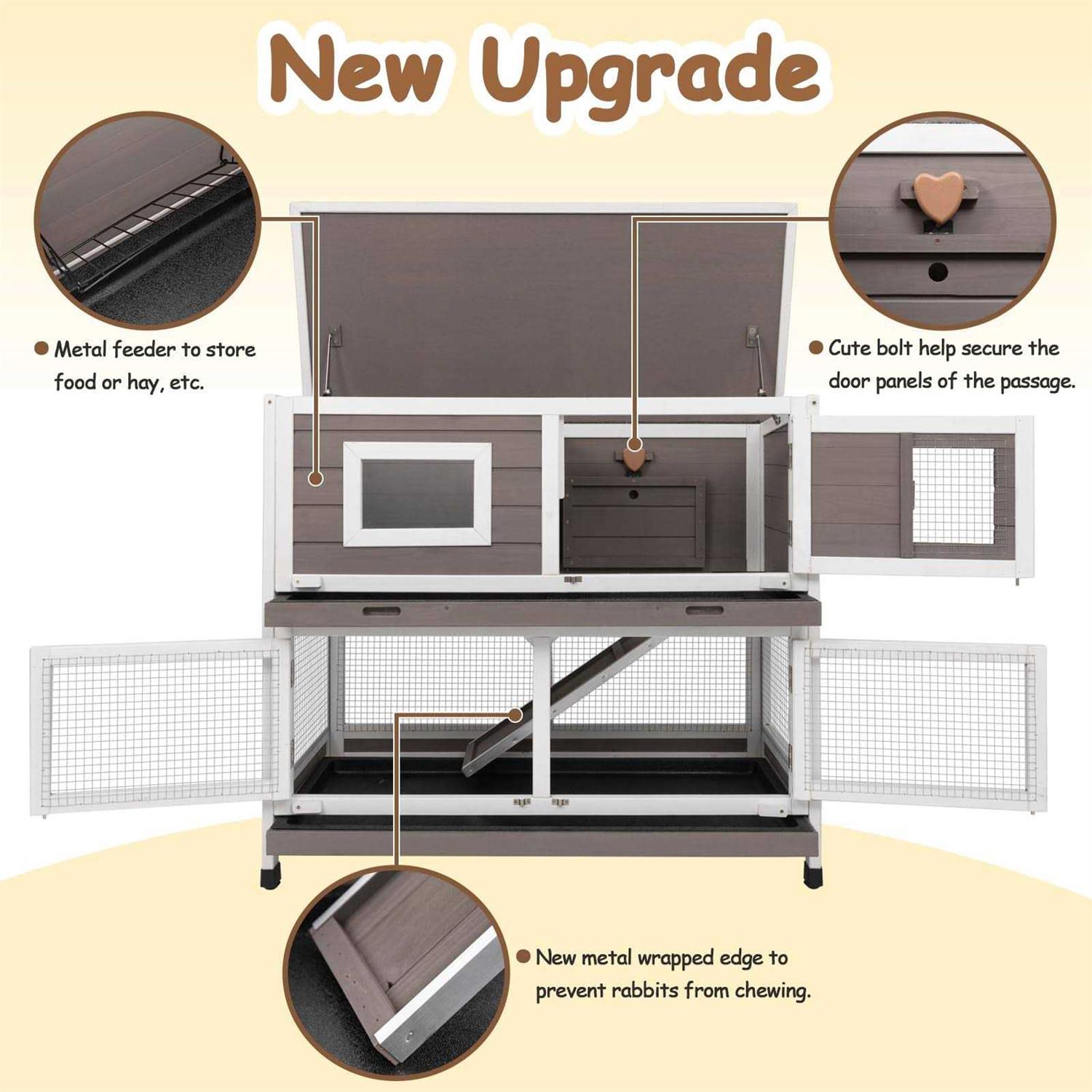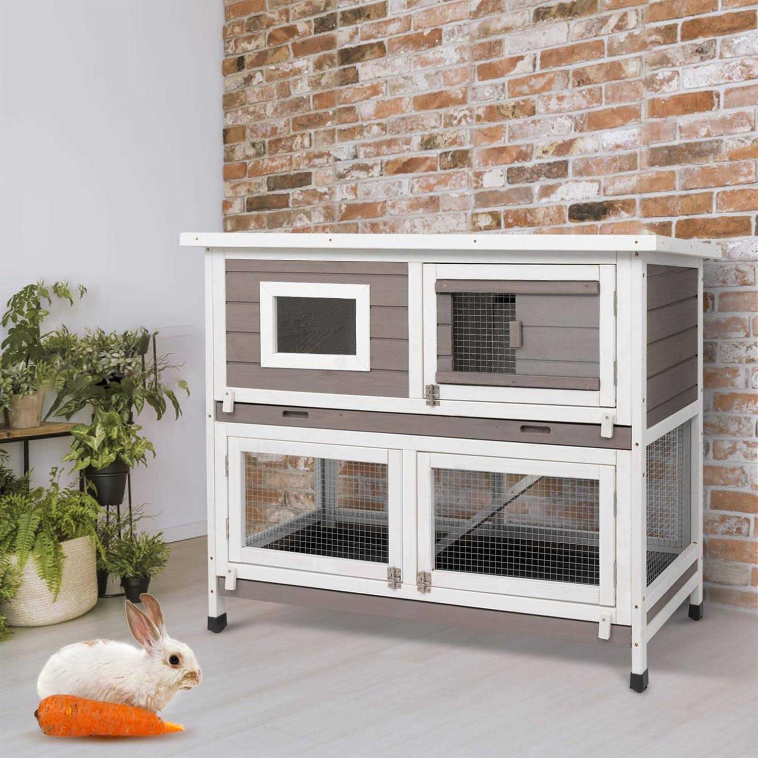 PetsCosset Rabbit Hutch Rabbit Cages Indoor Rabbit Hutch Outdoor Bunny Cage Rabbit Cage On Wheels Two Story Weatherproof Guinea Pig Cage for Small