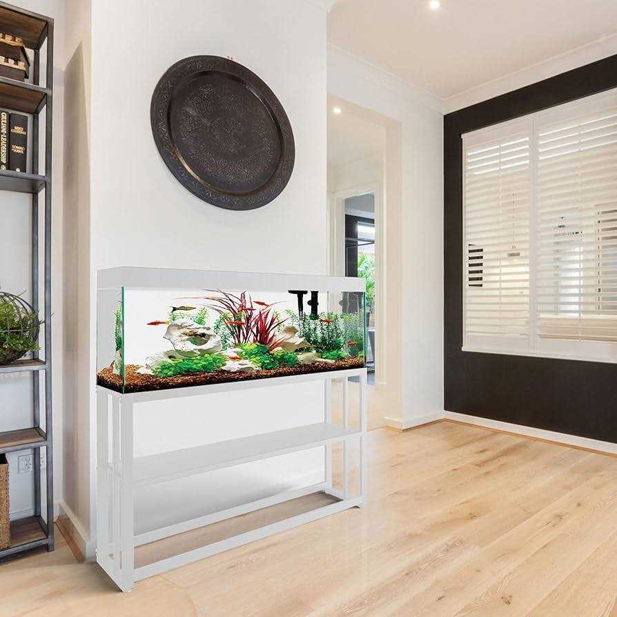 Fizgot White Fish Tank Stand Metal Aquarium Stand,55-75 Gallon Aquarium Turtle Tank, 48.4 x 14.8 x 29.1Inch, Reptile Terrariums and Breeder Tank