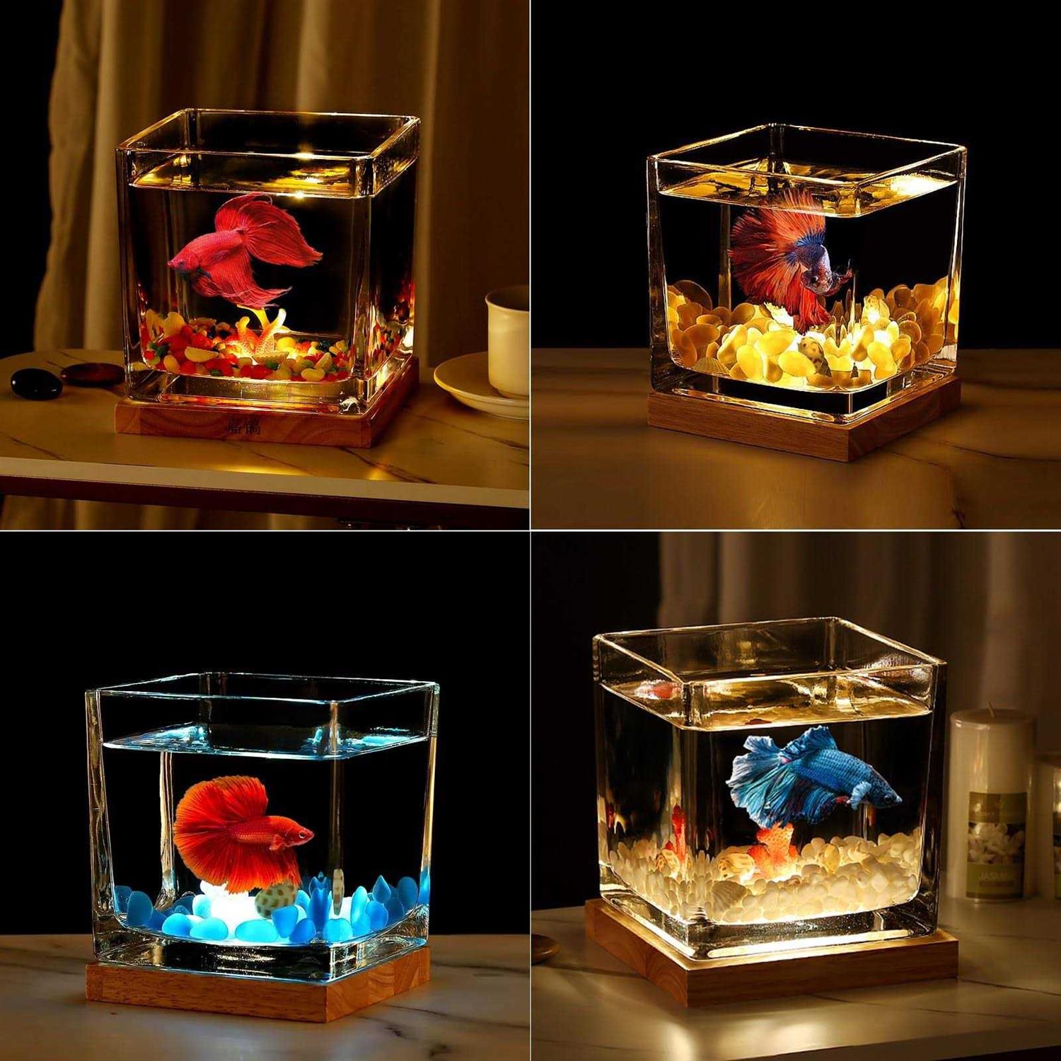 SARUFO 0.81Gallon Fish Tank Kit Desk Aquarium Set Small Glass for Kids Beginner Square Betta