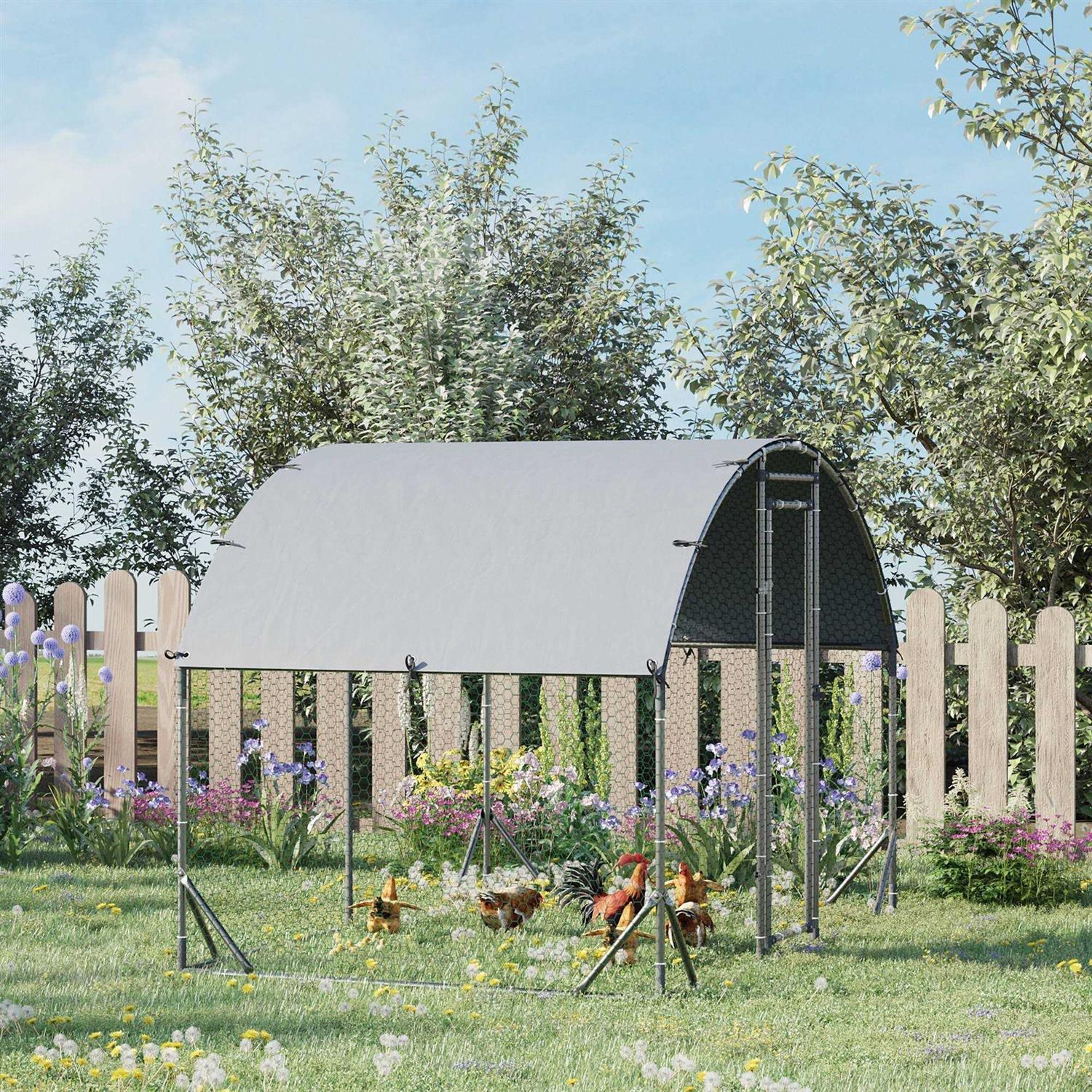 PawHut Metal Chicken Coop Walk-in Enclosure with Cover