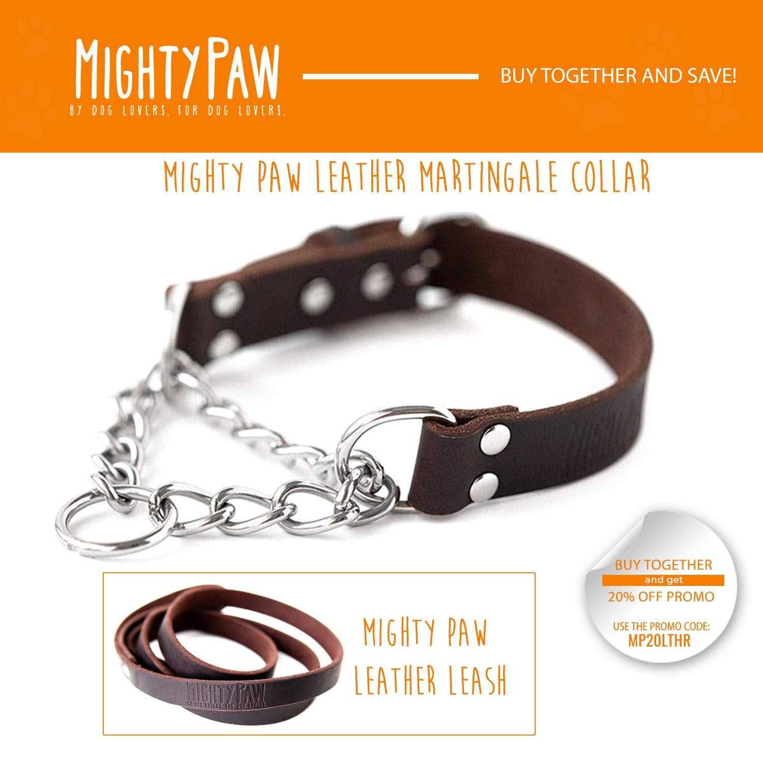 Mighty Paw Leather Collar Martingale Collar