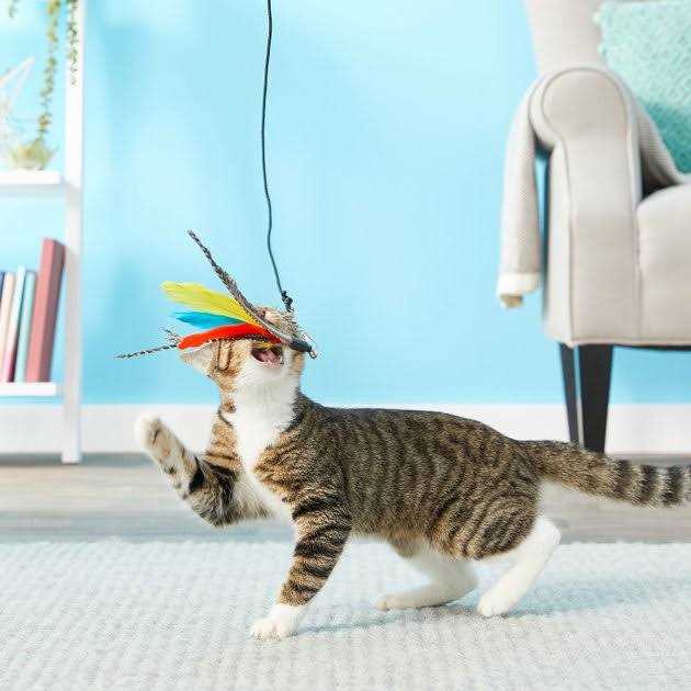 Pet Fit For Life Retractable interactive Cat or kitten Wand with 2 feathers and 1 soft furry combo