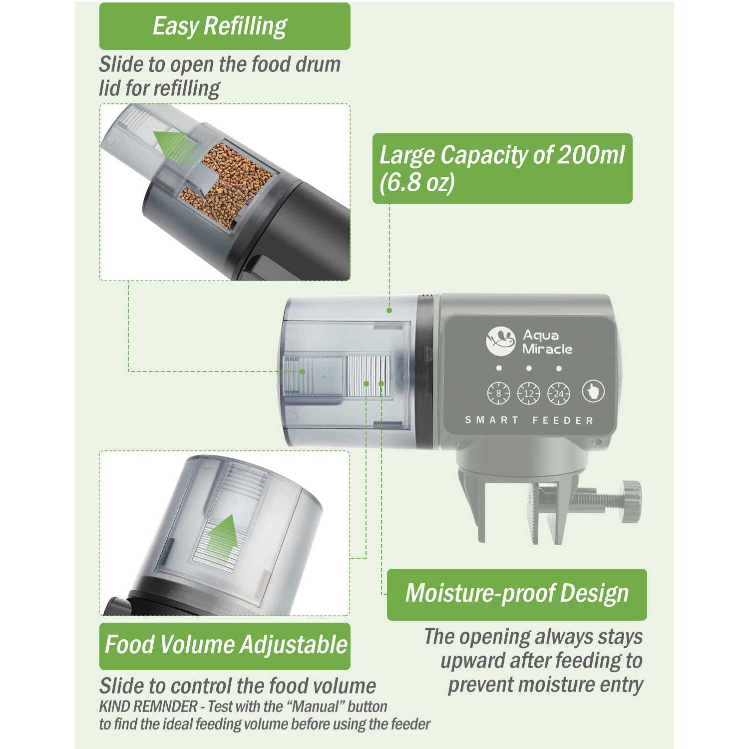 AquaMiracle Automatic Fish Feeder for Aquarium Fish Feeder Automatic Dispenser with Timer Fish Food Timer Fish Food Vacation