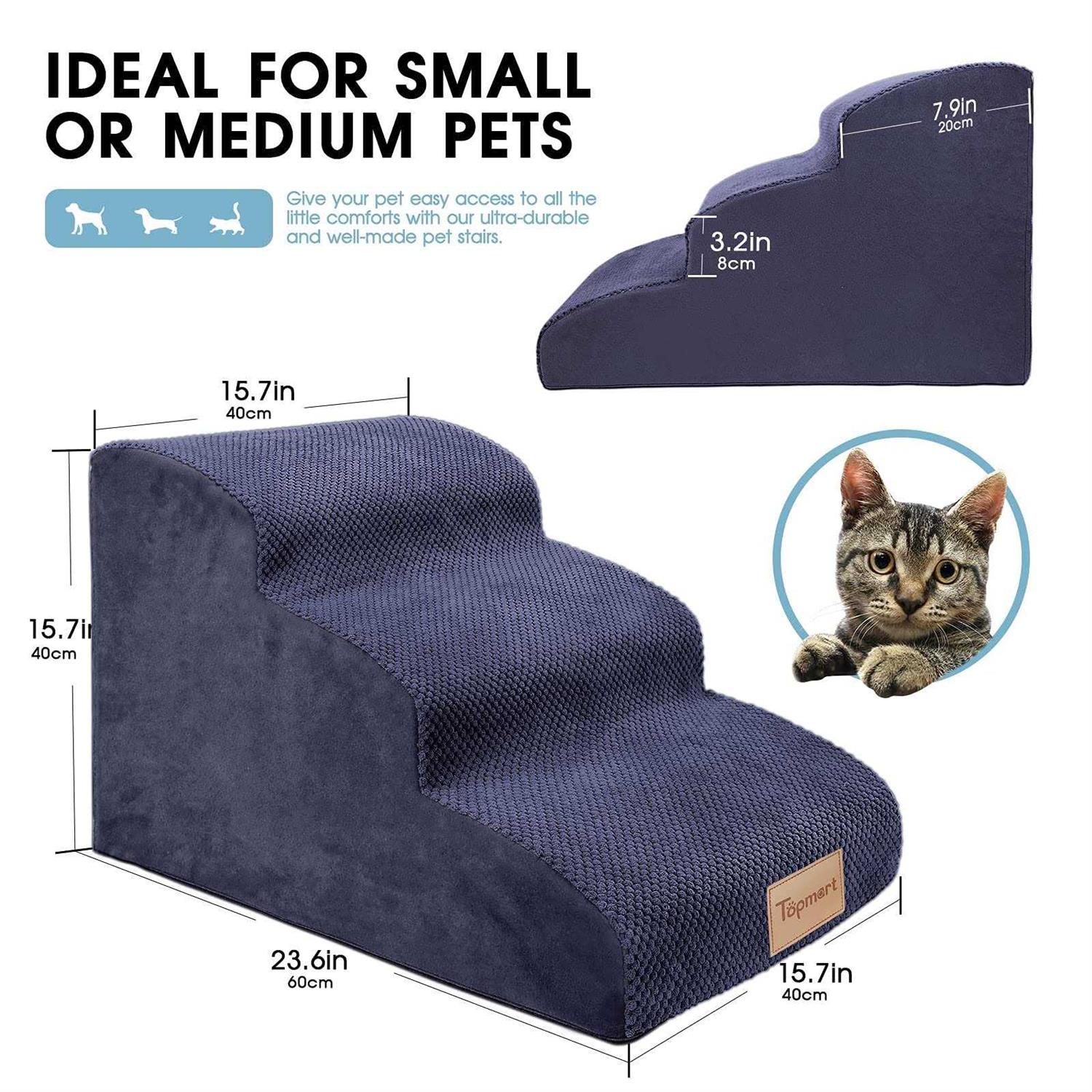 Topmart 3 Tiers Foam Dog Ramps/Steps,Non-Slip Dog Steps,Extra Wide Deep Dog Stairs,High Density Foam Pet Stairs/Ladder,Best for Older Dogs,Cats