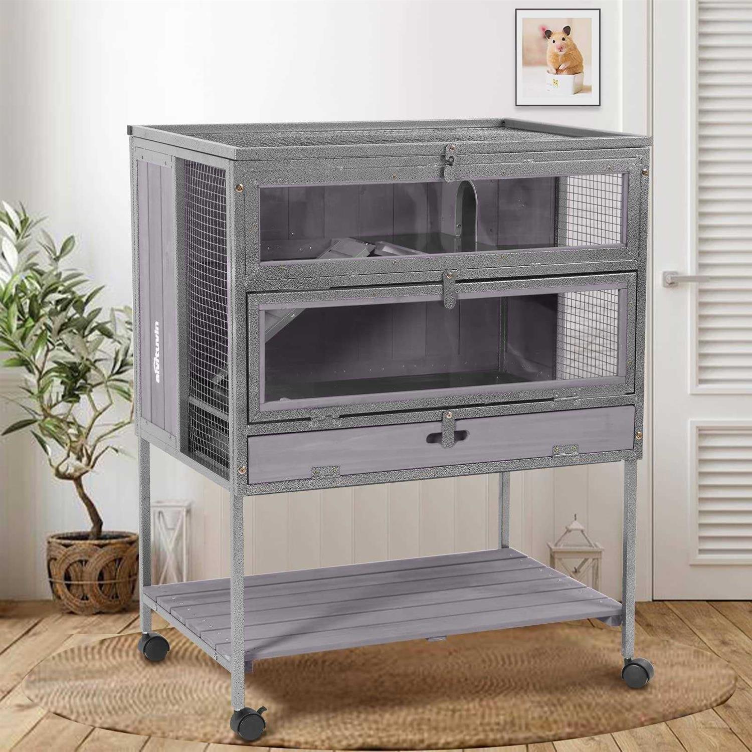 Aivituvin Hamster Cage Large Guinea Pig Cage with Metal Frame Movable Rat Habitat with Aluminium Alloy Edge,Plastic Deep Not Leakage Pull Out Tray,Storage