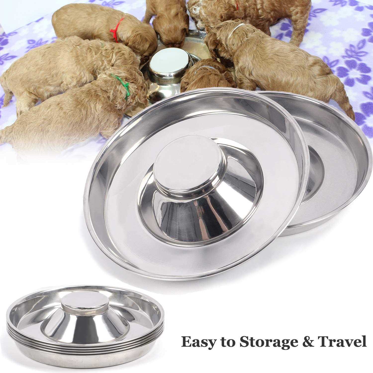 Podinor Stainless Steel Puppy Dog Bowls Pets Puppies Feeding Food and Water Weaning Bowls Dishes Feeder
