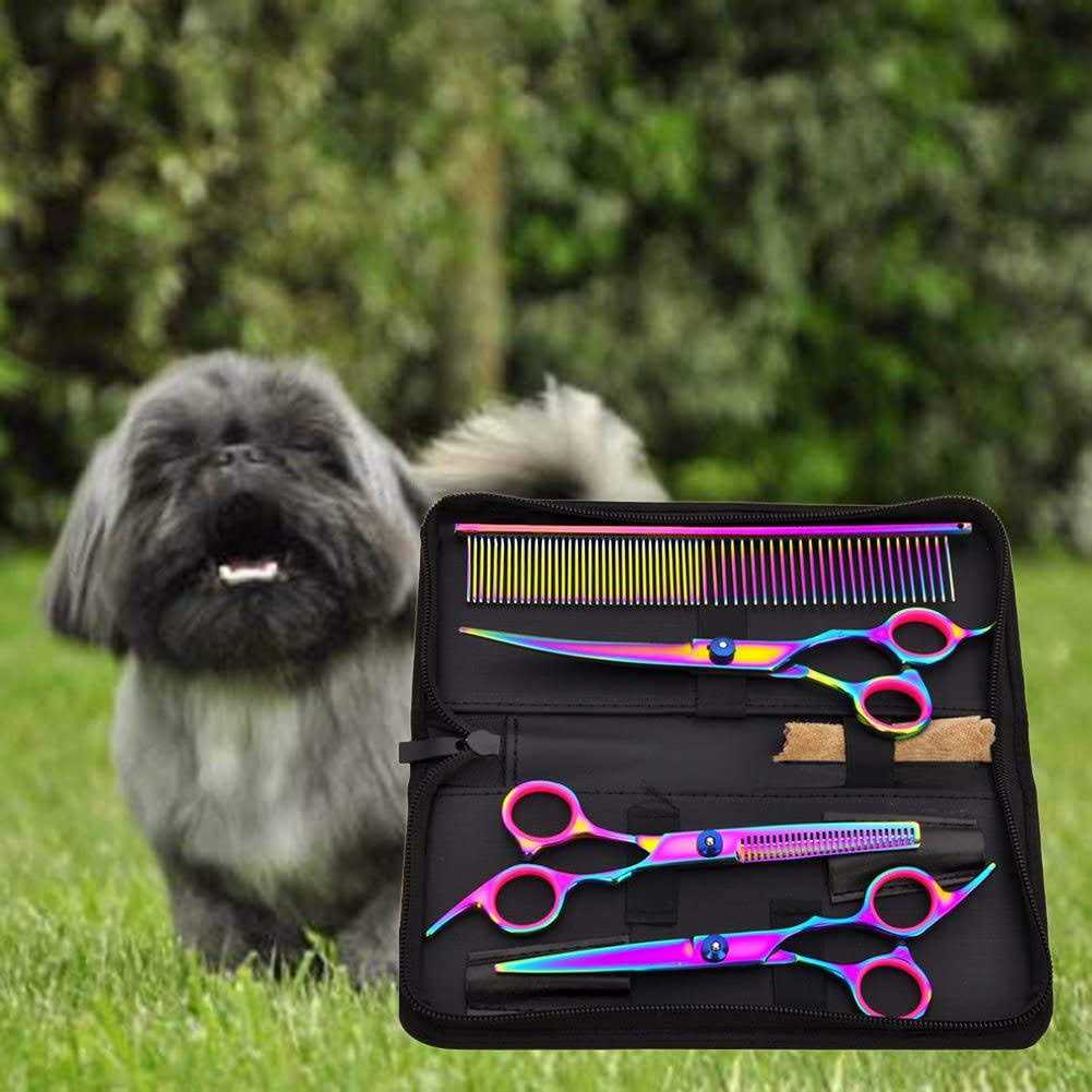 Hucholite Dog Grooming Scissors Colorful Pet Trimming Scissors Set Professional Grooming Barber Scissors Kit 7 inch Stainless Steel Shears for Grooming and