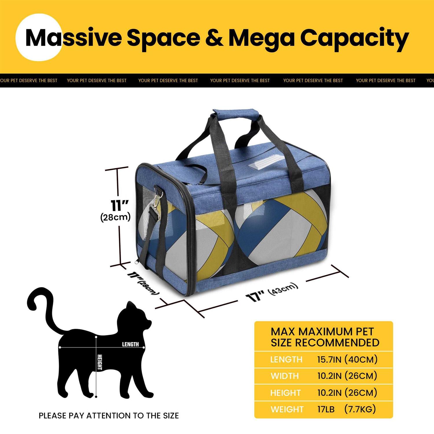 Conlun Cat Carrier Airline Approved Soft-Sided Dog Carrier with Inner Safety Leash