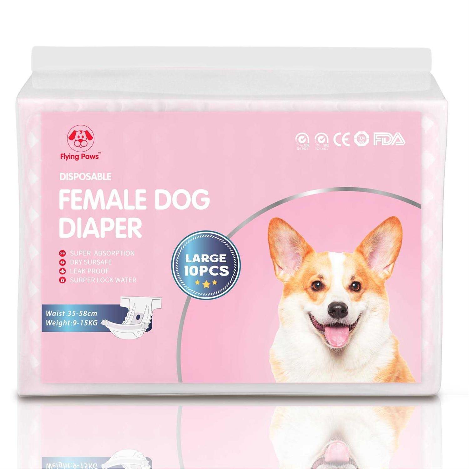 Flying Paws Disposable Female Dog Diapers, Puppy Diapers with Adjustable Elastic Waistline for Female Dog or Cat in Heat