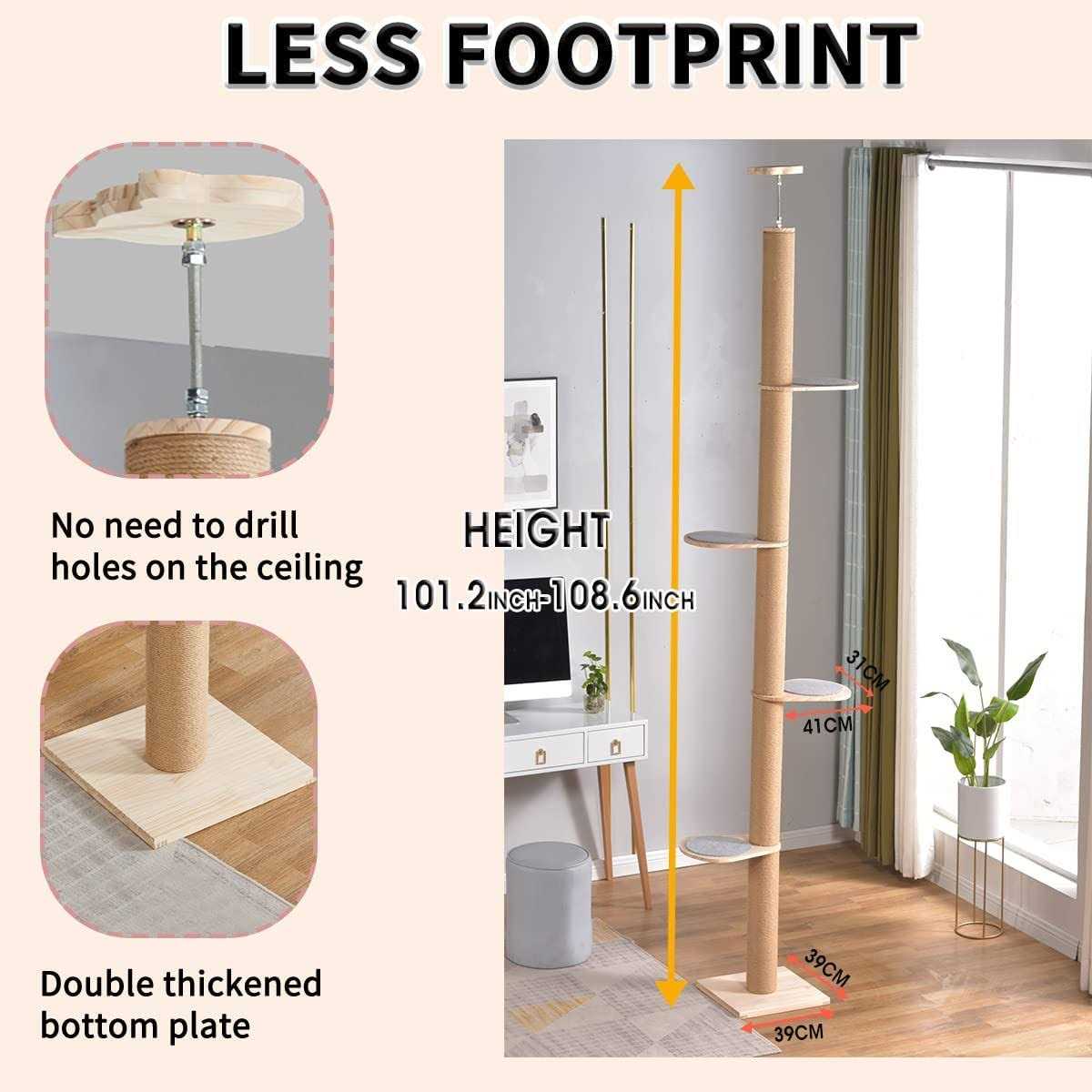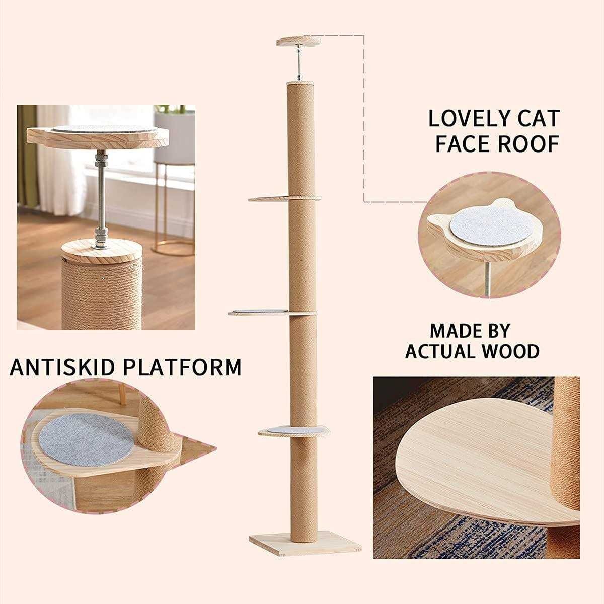 Catforest Floor-to-Ceiling Cat Tree Cat Climbing Tower with Natural Sisal Rope Scratching Post