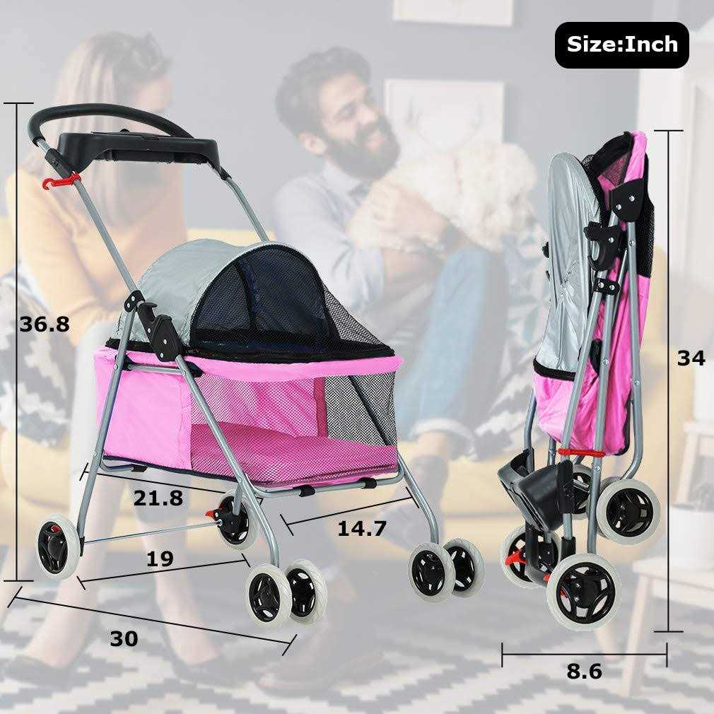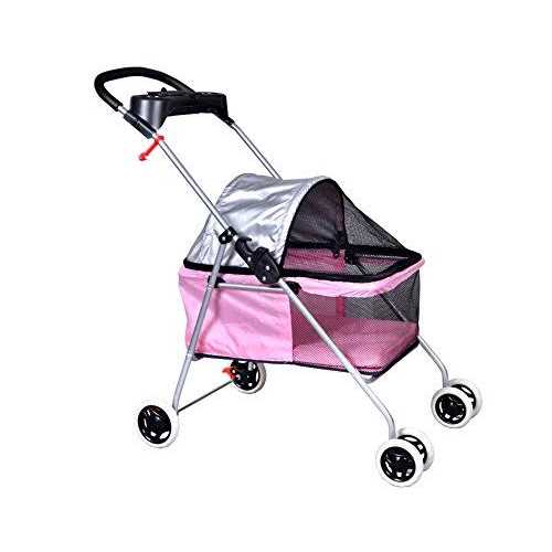 BestPet Pet Stroller 4 Wheels Posh Folding Waterproof Portable Travel Cat Dog Stroller with Cup Holder