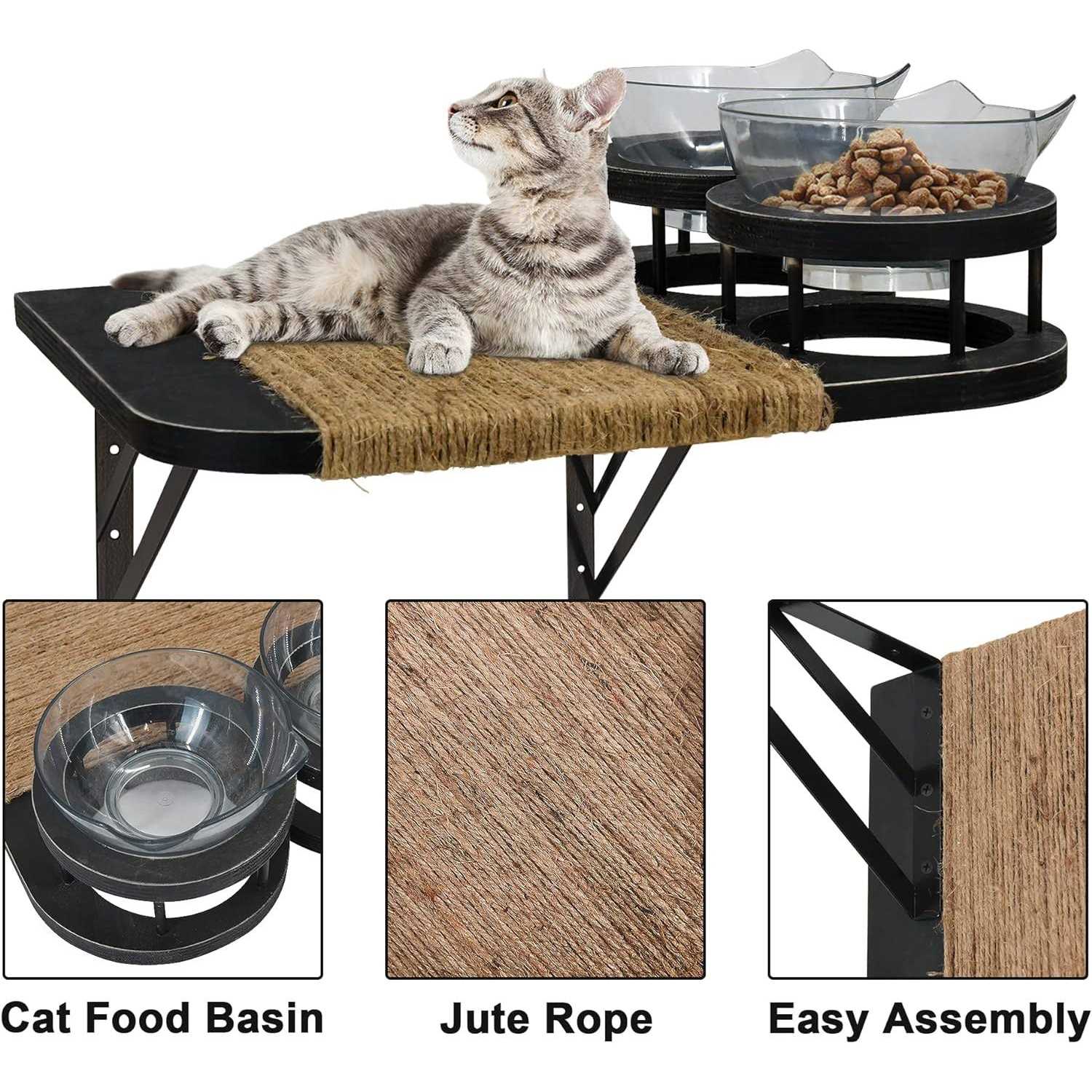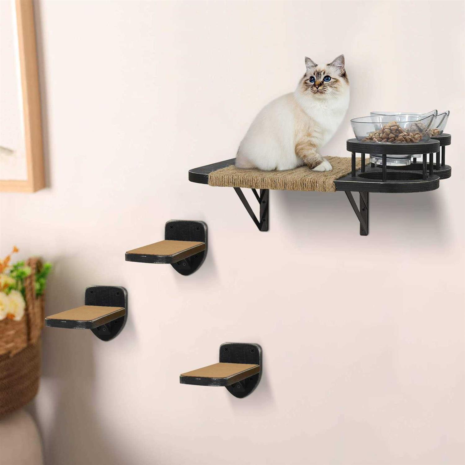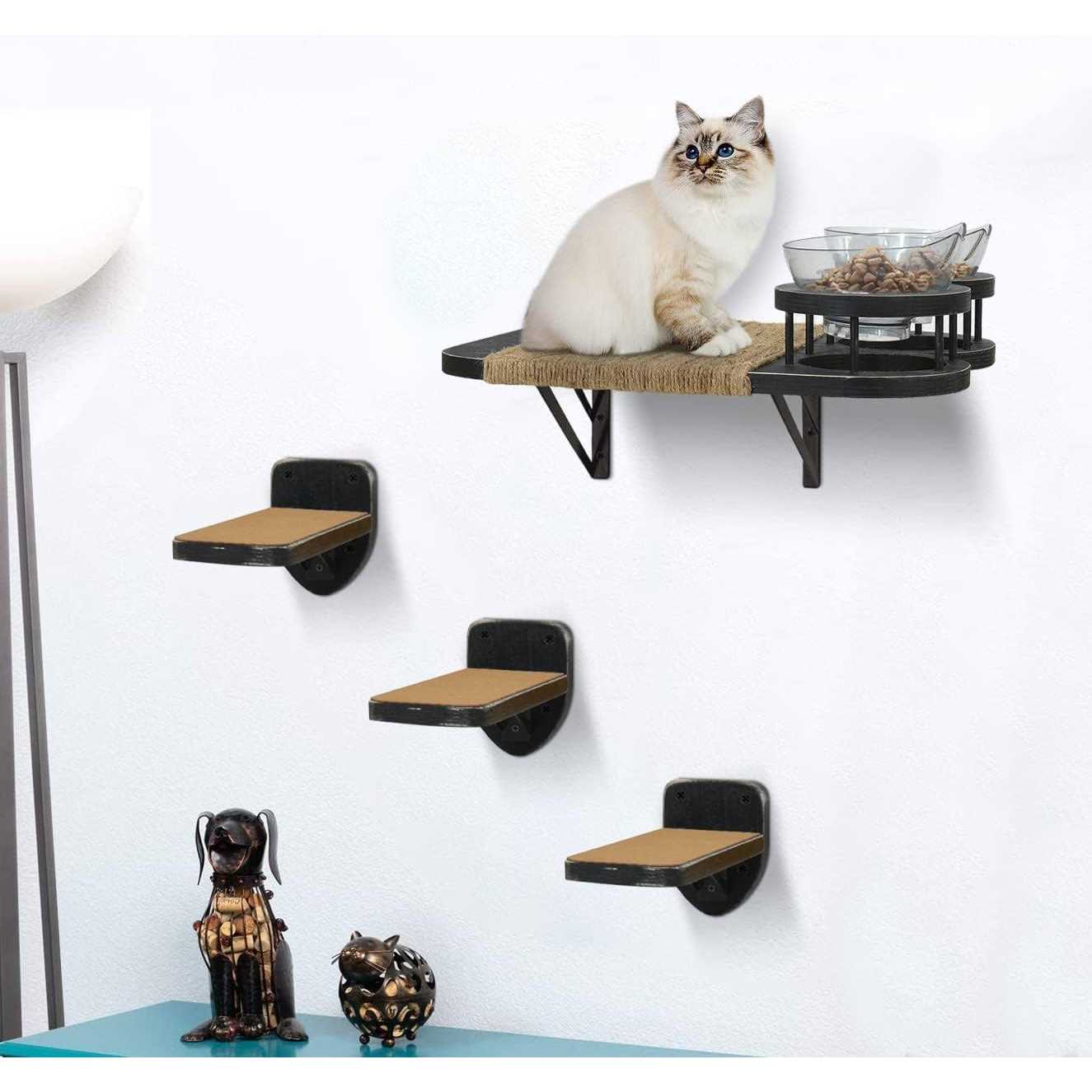 MEMOORIAL Cat Hammock Cat Wall Shelves with 3 Steps, Cat Shelves and Perches with 2 Cat Food Shelf