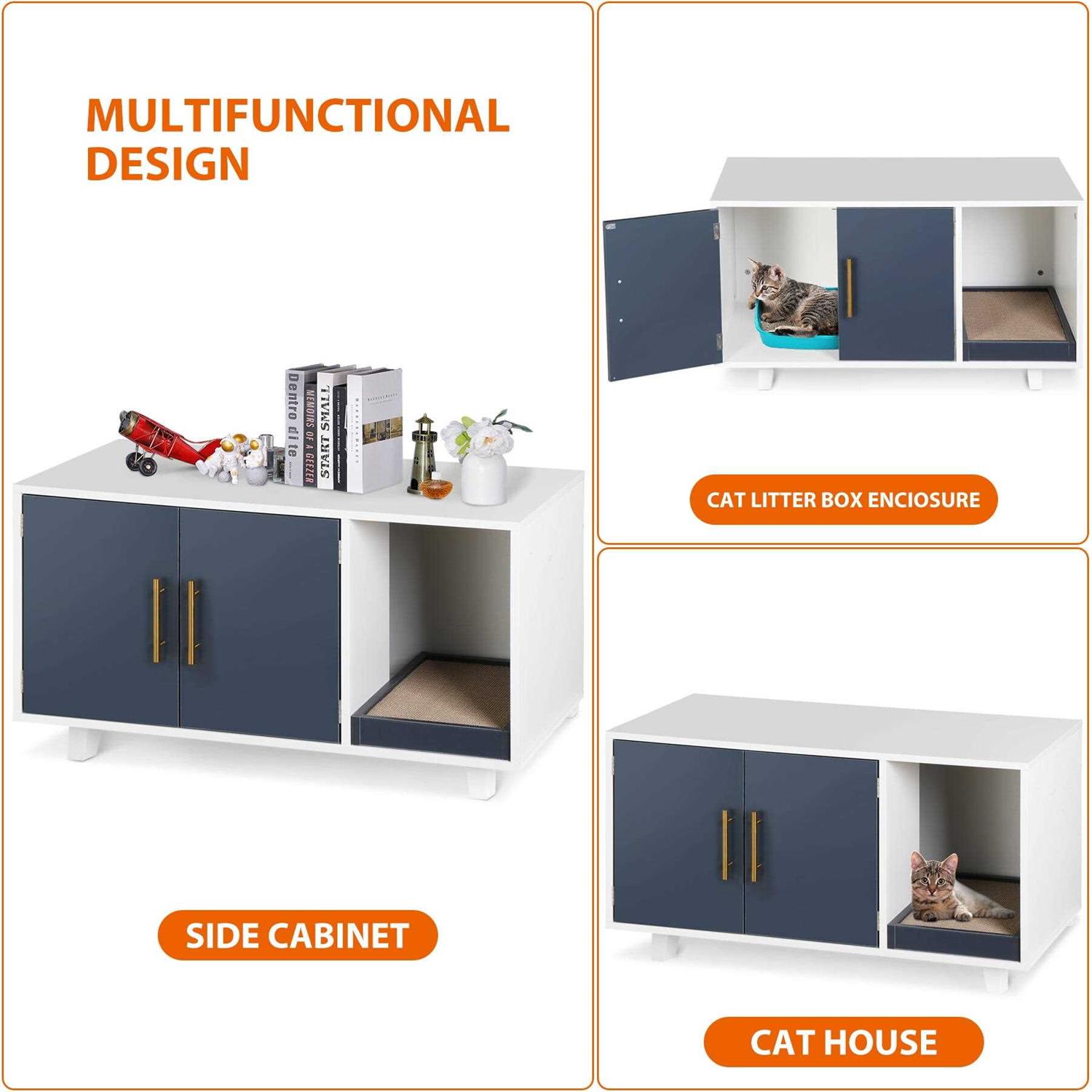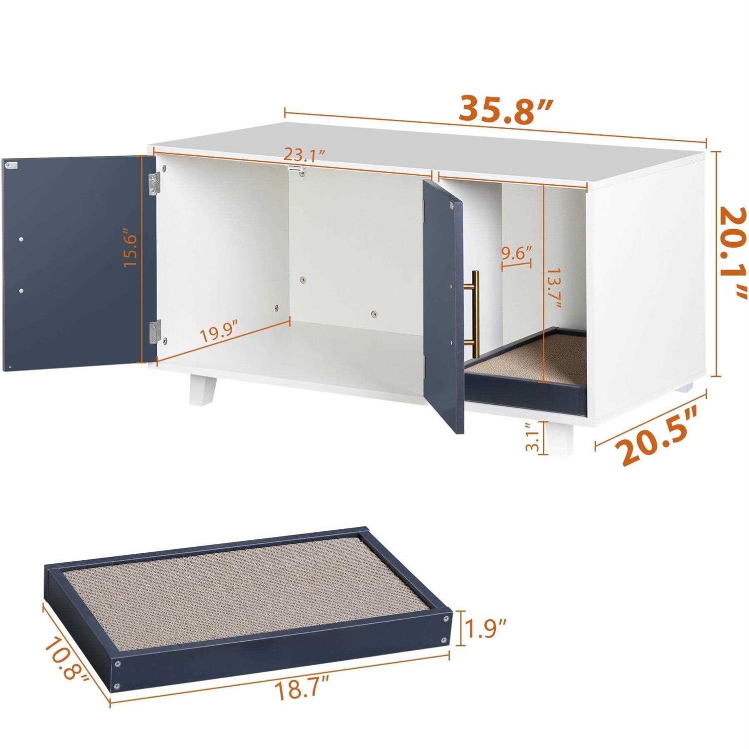 Homgarden 35.8”l x 20”W Cat Hidden Washroom Pet Litter Box Enclosure House W/Scratch Pad