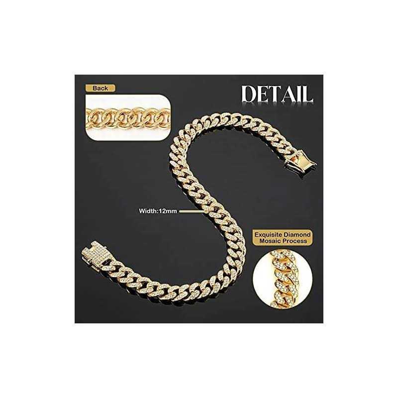 Tallew Dog Chain Diamond cuban Collar Walking Metal Chain Collar with Design Secure Buckle
