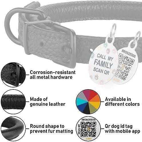 Bronzedog Rolled Leather Dog Collar with QR ID Dog Tag Round Personalized Collars for Small Medium Large Dogs Puppy Cat