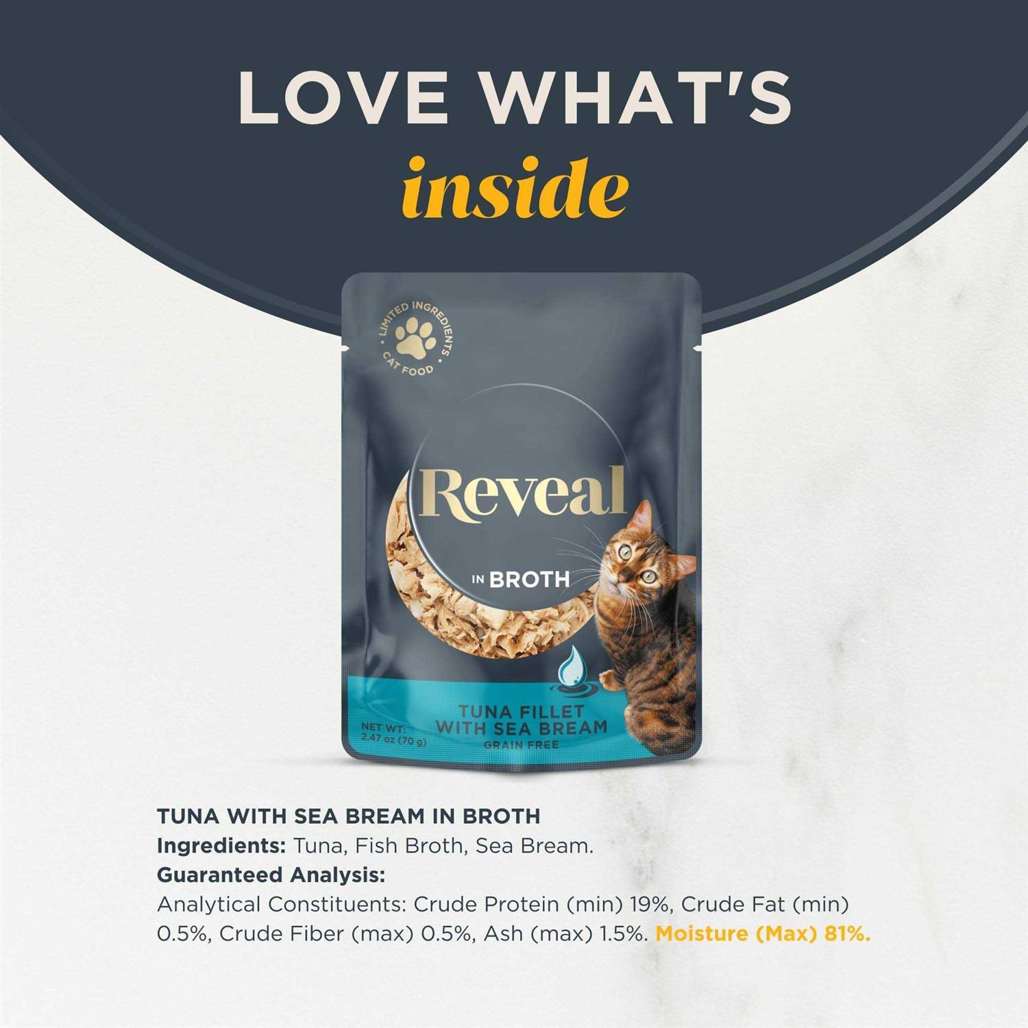 Reveal Natural Wet Cat Food Tuna Fillet with Sea Bream in Broth