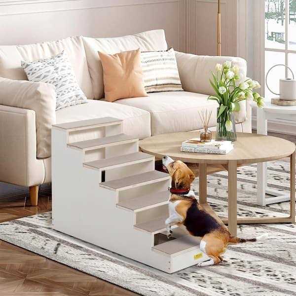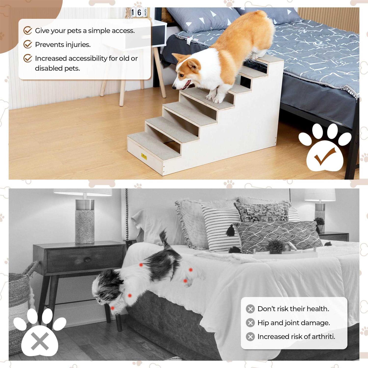 CoziwowWood Dog Stairs Climber 7-Step Pet Ladder with Carpet Steps