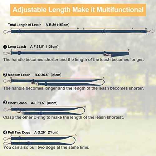 Wisedog Waterproof Dog Leash Standard Dog Leashes With 2 Hooks For Walking, Adjustable Lengths For Traffic Control Safety, Durable and Odor Proof