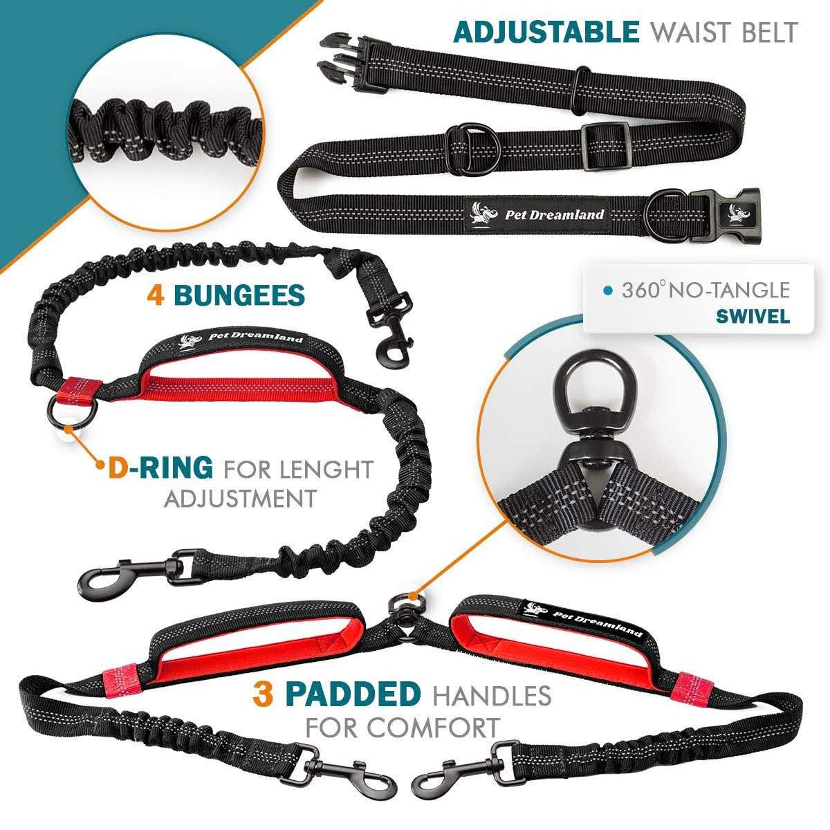 Pet Dreamland Exquisite Double Dog Leash for Large Dogs Hands Free Dog Leash 2 Dogs