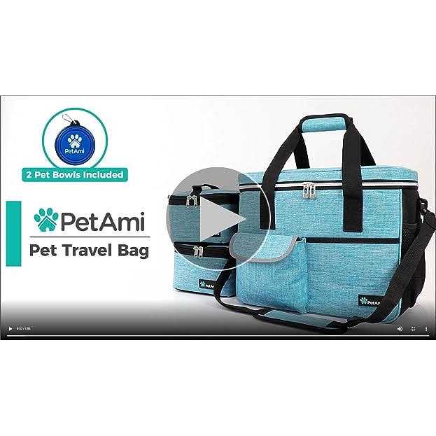 PetAmi Dog Travel Bag, Travel Pet Bag Organizer, Dog Food Travel Bag with Food container and Bowls