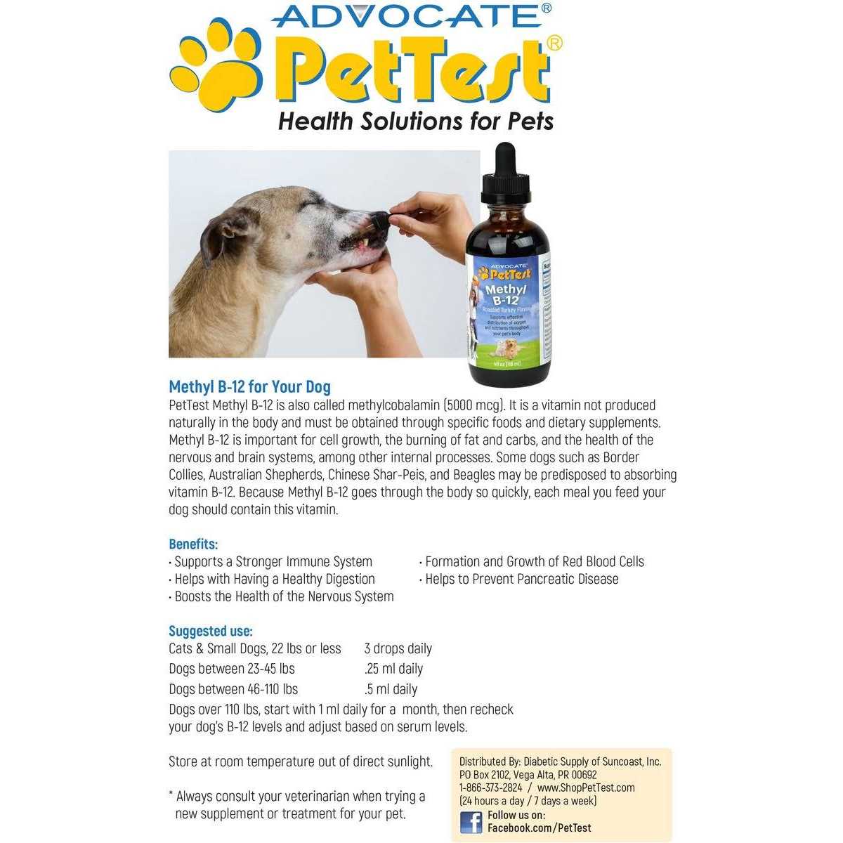 Pettest Methyl B-12 for Diabetic Dogs Cats 4 fl oz