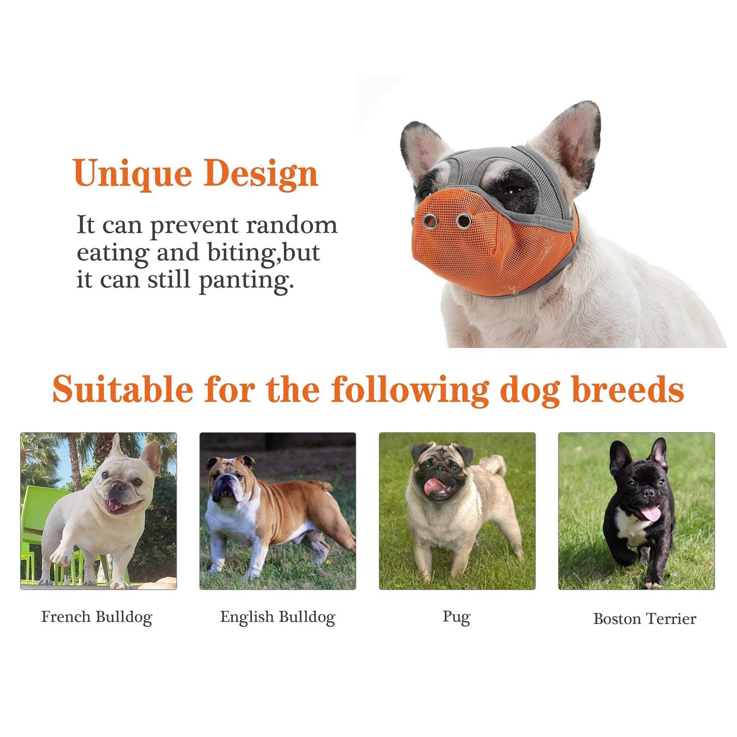 CILKUS Short Snout Dog Muzzles Bulldog Muzzle Adjustable Breathable Mesh Dog Muzzle Can Stick Out Tongue and Drink Water Anti-Biting and Training