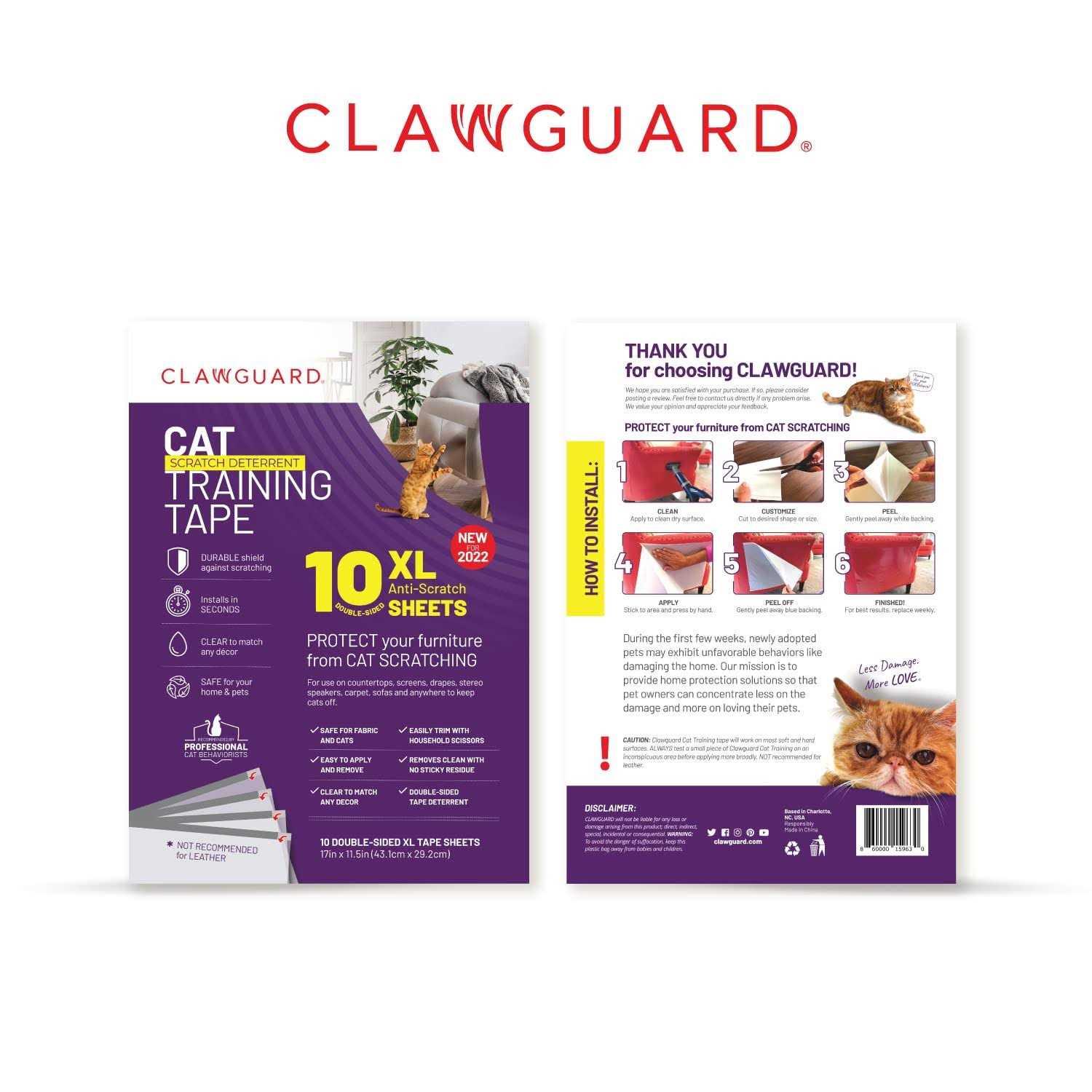 CLAWGUARD Cat Repellant Tape 10 XL Sheets Cat Scratch Furniture Protector