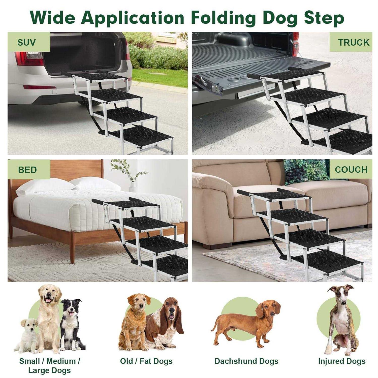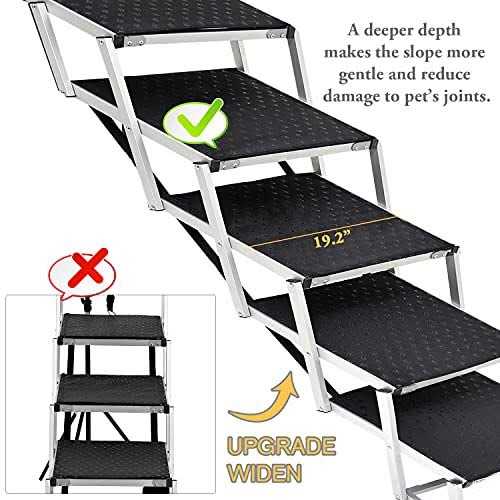 LUFFWELL 19.2” Extra Wide Dog Car Stairs, Foldable Dog Car Ramp with Nonslip Surface for Cars, Truck and SUV