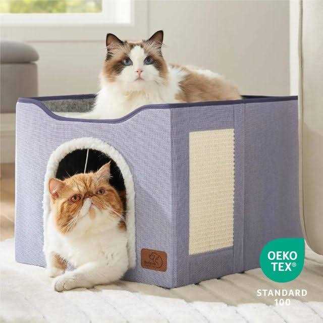 Bedsure Cat Beds for Indoor Cats Large Cat Cave for Pet Cat House with Fluffy Ball Hanging and Scratch Pad