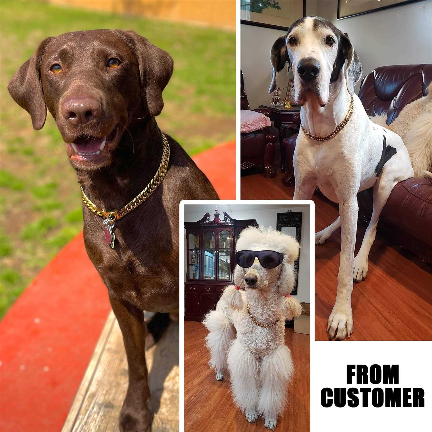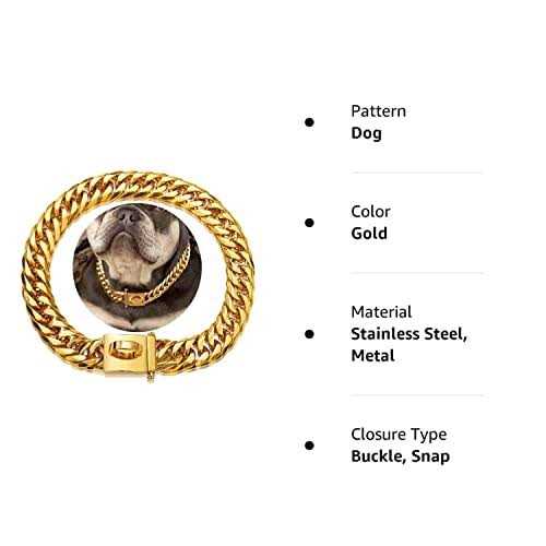 W/W Lifetime Gold Chain Dog Collar 16MM 18K Gold Cuban Link Dog Collar with Secure Snap Buckle