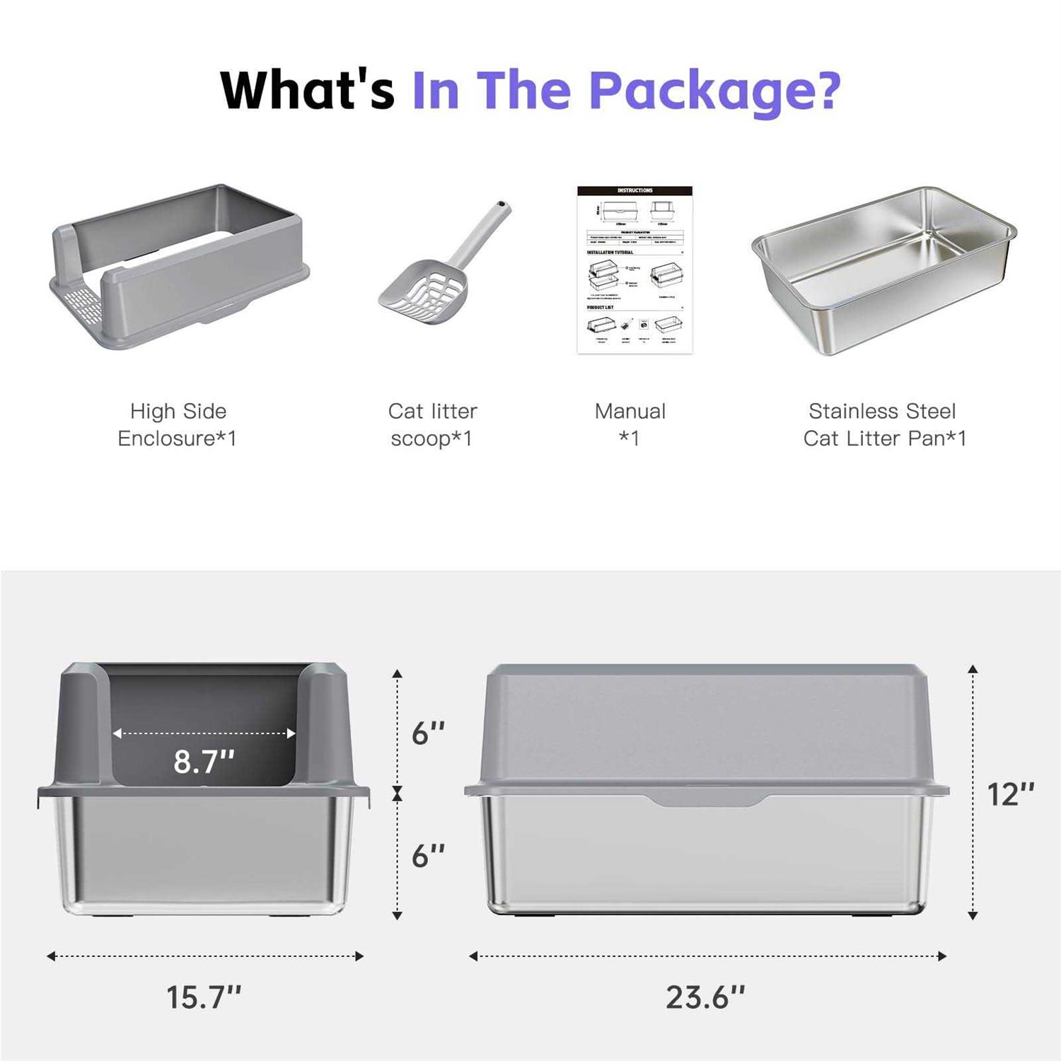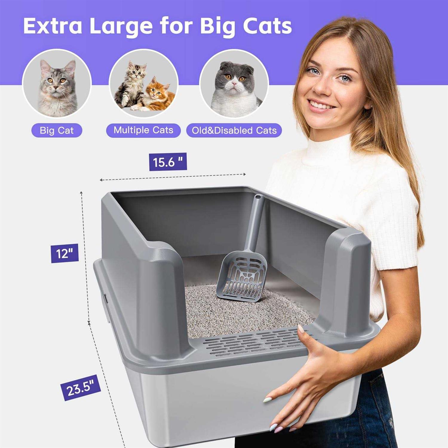 Suitfeel Enclosed Stainless Steel Litter Box XL Metal Litter Box with High Side