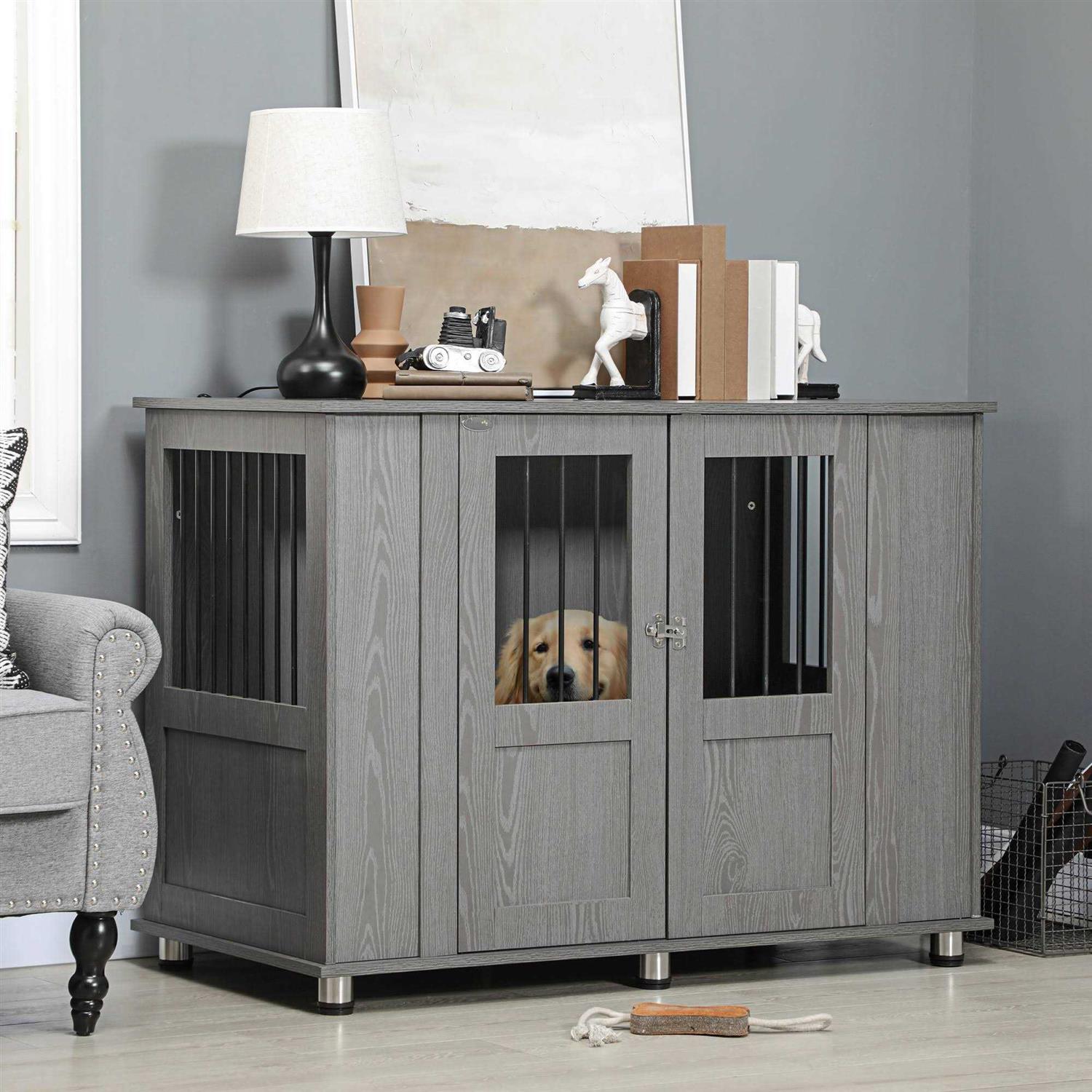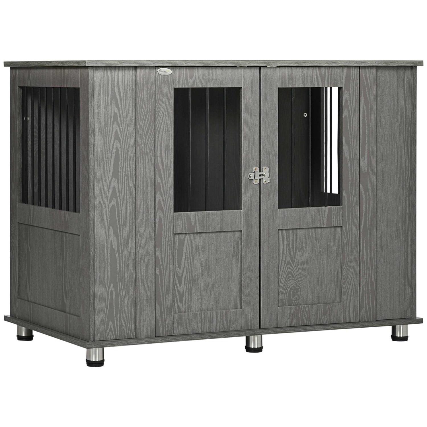 PawHut Dog Crate Furniture Wooden End Table Furniture with Lockable Magnetic Doors