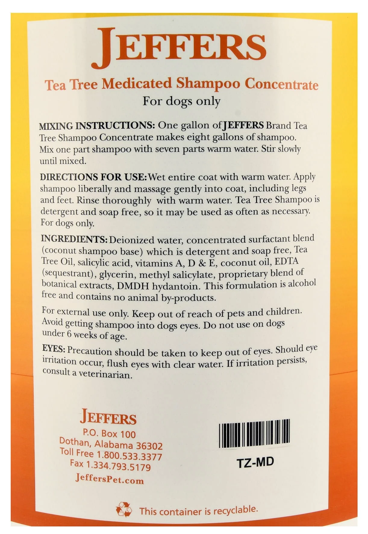 Tea Tree (Melaleuca) Medicated Dog Shampoo for Dry Skin